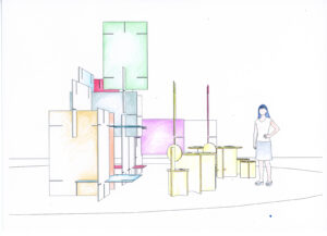 La disposizione dell’installazione nello spazio espositivo verrà decisa attraverso un processo laboratoriale, guidato dall’artista, che coinvolgerà un gruppo di persone del territorio. La progettazione dell’installazione è frutto di un lavoro collettivo che ha coinvolto Hypereden per la progettazione spaziale e Atto Studio per il graphic design, e prevederà la collaborazione di un gruppo di studenti e studentesse di graphic design nella co-progettazione degli elementi visivi e degli oggetti espositivi. Scarica il pdf informativo