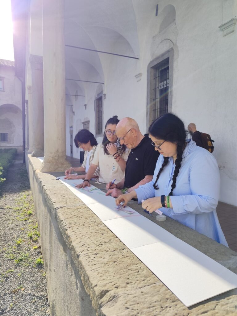 L’artista Ilaria Turba è stata invitata a partecipare al PRIN BorderArt(E)Scapes per sviluppare una ricerca e un progetto di opera inedita, capace di tracciare un fil rouge tra le diverse indagini condotte dalle cinque unità di ricerca, mettendo in relazione le metodologie disciplinari e transdisciplinari attivate, con l’obiettivo di aprire il progetto verso un pubblico più vasto. Nel corso del lavoro, l’artista ha attraversato i luoghi della ricerca, attivando un dialogo con gli undici ricercatori e ricercatrici coinvolti. Questo scambio umano e intellettuale, ha preso avvio dalle specificità delle singole ricerche esplorando le diverse prospettive e peculiarità , per poi allargarsi a riflessioni più ampie sul tema e sulla contemporaneità . Parallelamente, l’artista ha condotto dei percorsi laboratoriali partecipativi: a Bergamo con un gruppo di studentesse e studenti dell’Accademia di Belle Arti e a Trento con un gruppo di ragazze e ragazzi del Liceo Artistico. Attraverso modalità condivise e la messa in campo di pratiche artistiche esperienziali, i laboratori hanno approfondito le tematiche emerse nel corso della ricerca, trasformandole in occasione di dialogo e sperimentazione collettiva. Il progetto installativo finale concepito dall’artista prende forma da questi due percorsi di indagine e di esperienza sul campo, e nasce con l’intento di offrire a un pubblico vario e diversificato uno spazio aperto di riflessione, in cui arte e ricerca si incontrano per generare nuove forme di conoscenza e partecipazione.
