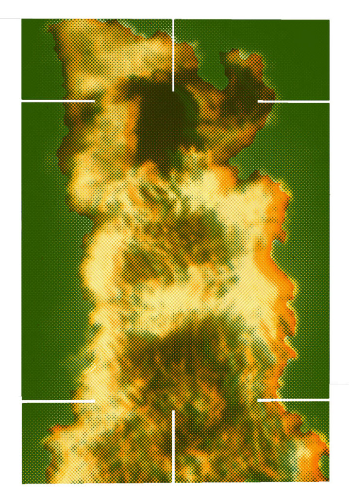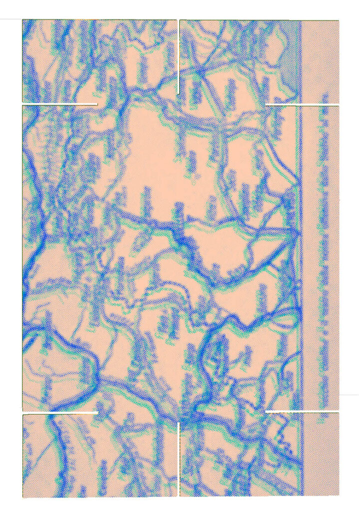 Durante la ricerca, l’artista ha selezionato e rielaborato con la tecnica risograph una serie di immagini provenienti dalle cinque unitĂ di ricerca. Queste immagini d’archivio dialogano tra loro nello spazio attraverso la modularitĂ e l’incastro dei pannelli.  Â